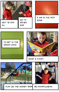 Over the last 3 weeks we have been working on a special booklet about our Zones of Regulation. The children have completed activities for each of the 4 zones. Our tamariki are getting very good at expressing themselves (telling us what zone they are in and why) and also knowing what they can do to move back into the green zone if they are in the red, yellow or blue zone.